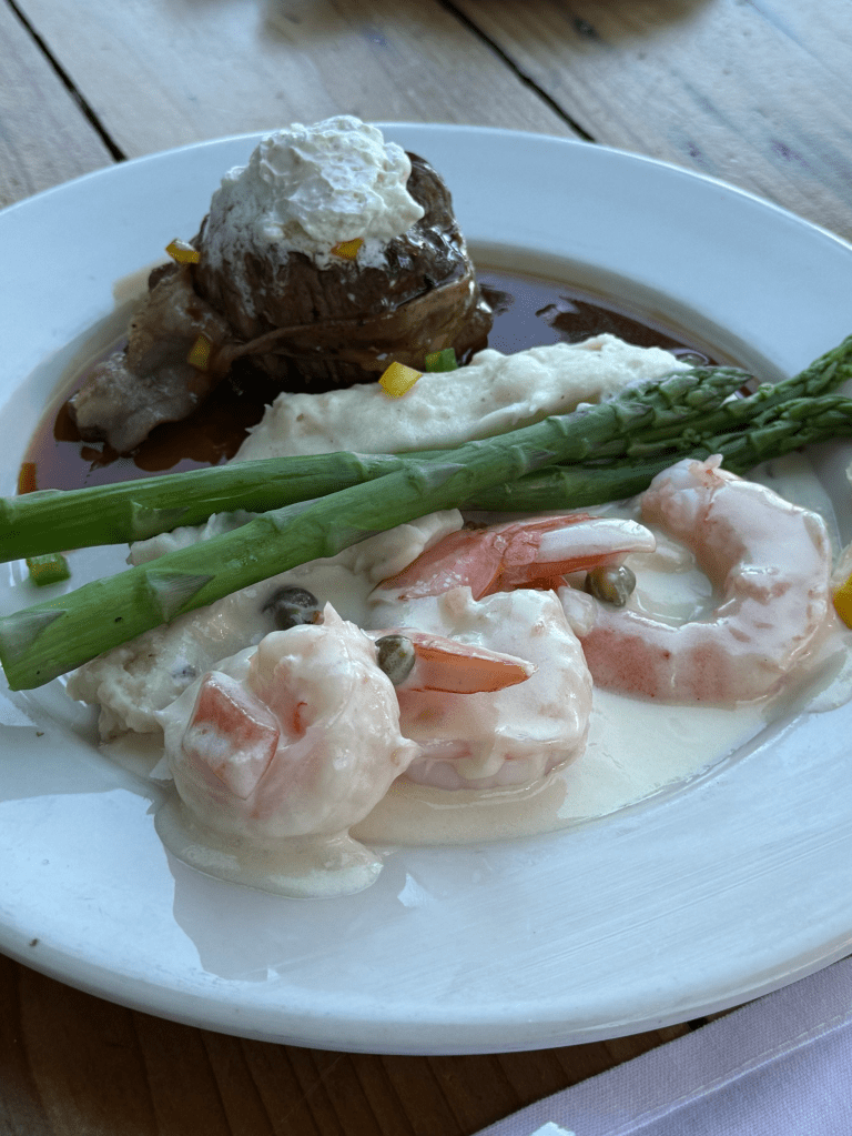 Gar Woods is this big, rustic-style lodge turned restaurant, and we got there a little early so we just grabbed drinks hung on the deck while we waited. For dinner, Harry got the bacon-wrapped filet & garlic scampi with mashed potatoes and asparagus, and I had the herb-roasted chicken with white wine rosemary jus, lemon feta orzo, and broccolini. Chefs. Kiss.
