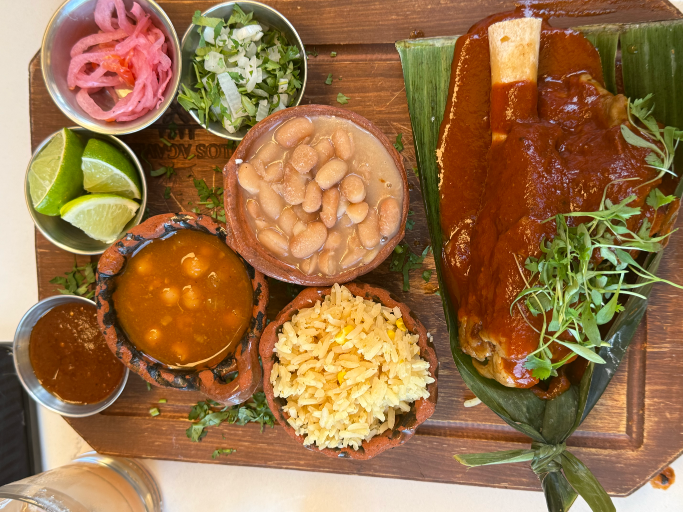 We arrived around 2:30 PM and immediately hit the pool, which was quiet, warm, and perfect for a midday recharge. Later that night, we got ready and took the local bus into town (lol, it was honestly so easy and only 20 minutes). Dinner was at Los Agaves, where we shared elote, ordered mango margaritas with sugared rims, and I had taquitos while Harry ordered a wild braised lamb shank, which came out in a banana leaf 🤌🏻💋