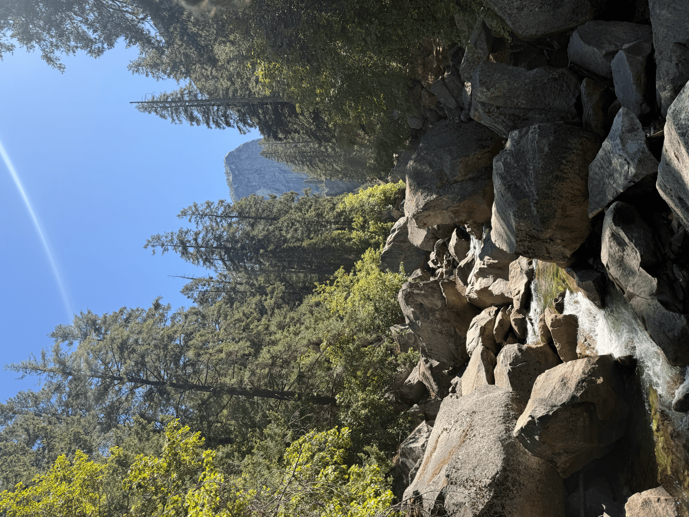 Fair warning: This trail is packed. Like “nearly got taken out by a 7-year-old with hiking sticks” level-packed. Bring your patience. That said – the views? Unreal. It was one of the steepest hikes I’ve ever done, but every slippery, switchback-y step paid off. We reached Vernall Fall first, which was a set of waterfalls where one smaller one spills into a glowing emerald pool before dropping into a second, even larger cascade.