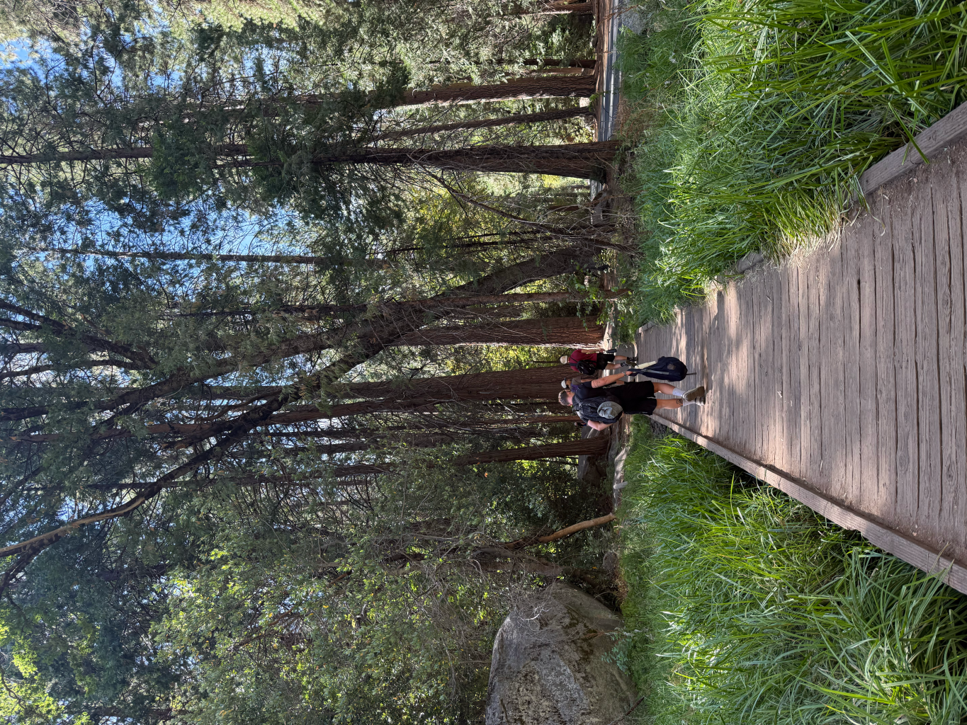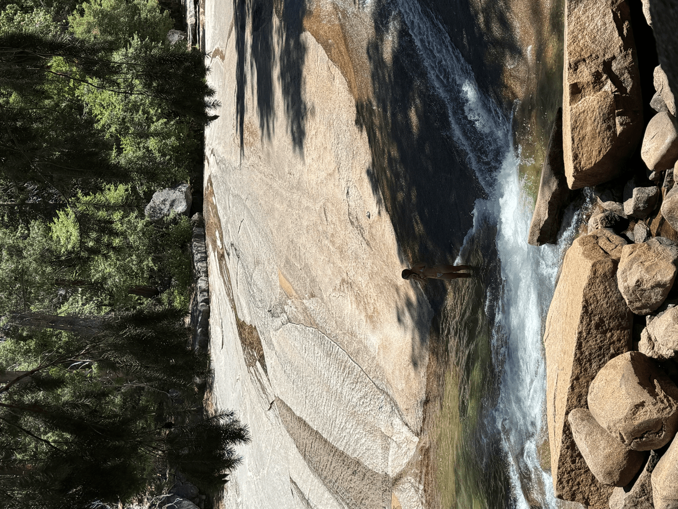 We left the Airbnb at 6:30 AM, arrived around 7:30-7:45, and managed to snag a spot in the valley. We grabbed coffee and started our hike on the Mist Trail, although part of it was under construction and didn’t fully loop at the time.