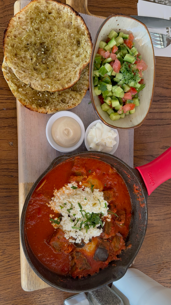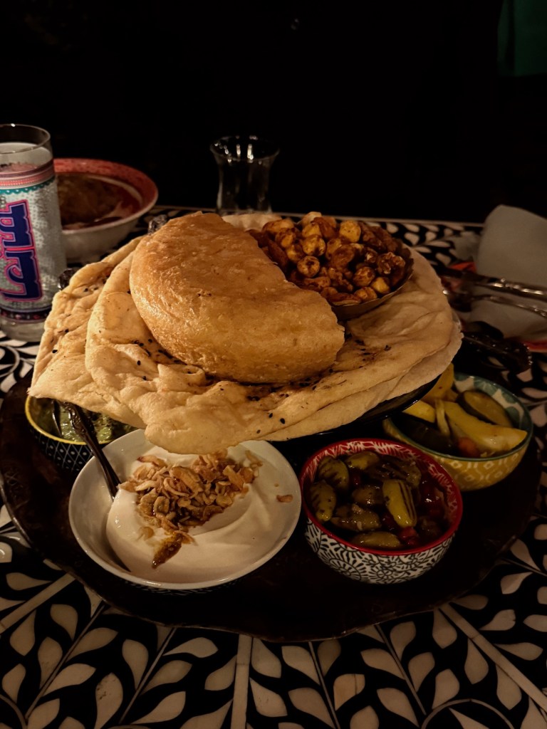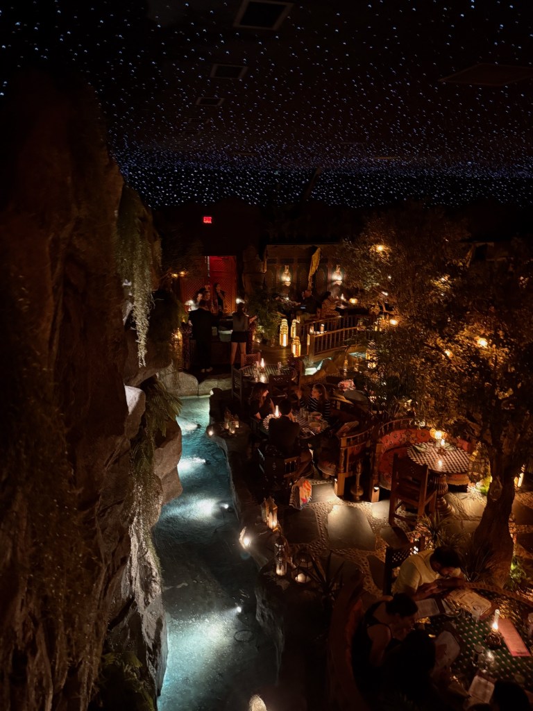 After heading back to rest and change, we went to Leila for dinner – top three meal of the trip, hands down. This Persian-Lebanese restaurant was straight out a movie: starry ceilings, waterfalls, glowing fire pits, and the smell of fresh pita in the air. We had an incredible meal and a cozy, beautiful night.