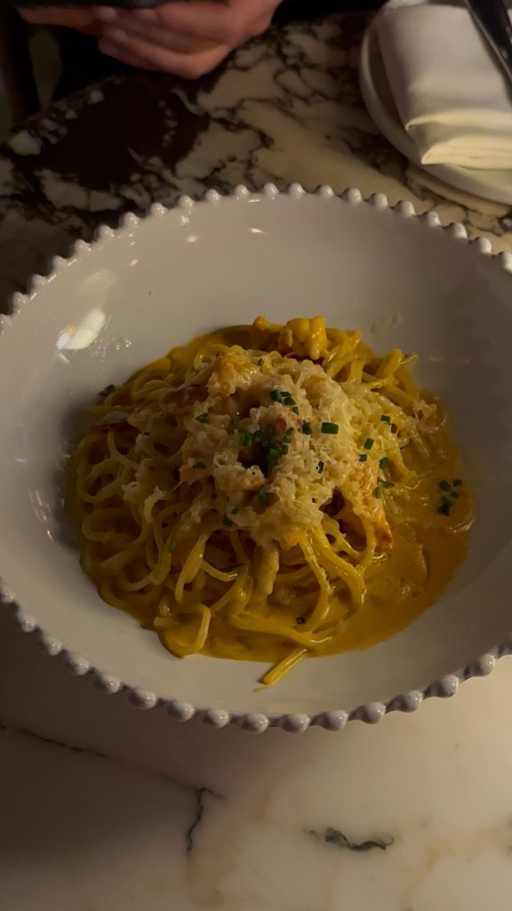 After a rest at the hotel, we got ready for a more low-key evening. Dinner at CouCou, a gorgeous French spot tucked between Beverly Hills and West Hollywood. We shared the most stunning lobster pasta dinner, followed by what I still consider – to this day – the best vanilla soft serve sundae I’ve ever had. We ended the night with a walk to the Sunset Strip to explore some bars. It was a slower Sunday, but we still had a great time – and yes, we made a stop at TomTom (cue the Vanderpump music).