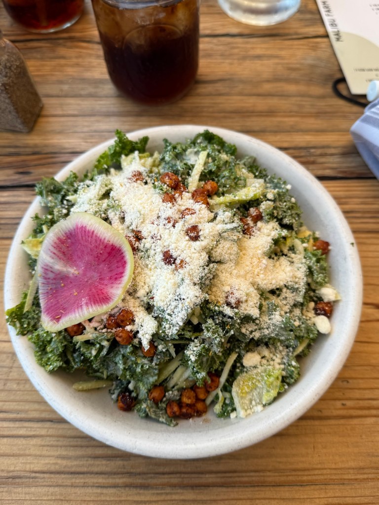 Alexa, play Malibu by Miley Cyrus. Our last full LA day was a dreamy one. We had a late breakfast, then headed to Malibu Beach around noon and spent about two hours in the waves…until I got rudely attacked by a rogue wave, after that, we decided we earnt a visit to Malibu Farm Pier Café to reset.