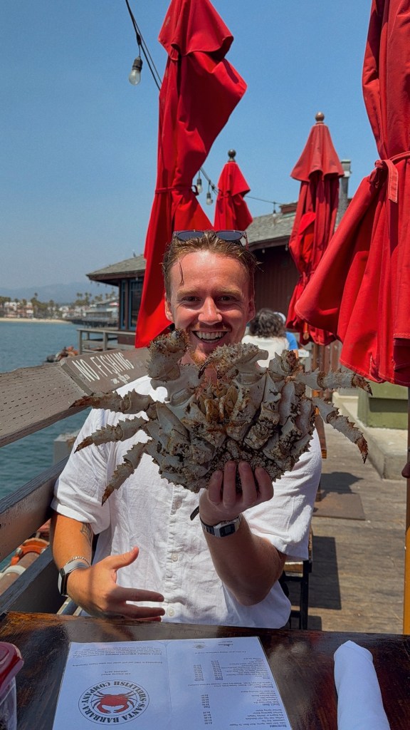 After more vintage shop browsing, it was time for the main food event of the trip: the 3lb box crab from Santa Barbara Shellfish Company. Holy heck. I’ve had my fair share of lobster in Maine and crab in Maryland, but this? This was something else. They gave tools and everything, we felt like kids cracking into it, and somehow… we ate the whole thing.