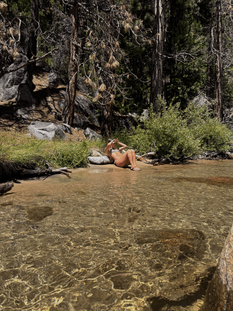 Instead of heading straight into the park, we took the afternoon to chill at Bass Lake, a local gem nearby. We parked by the water, set up our little spot, and spent a few hours reading, sunbathing, and just unwinding.