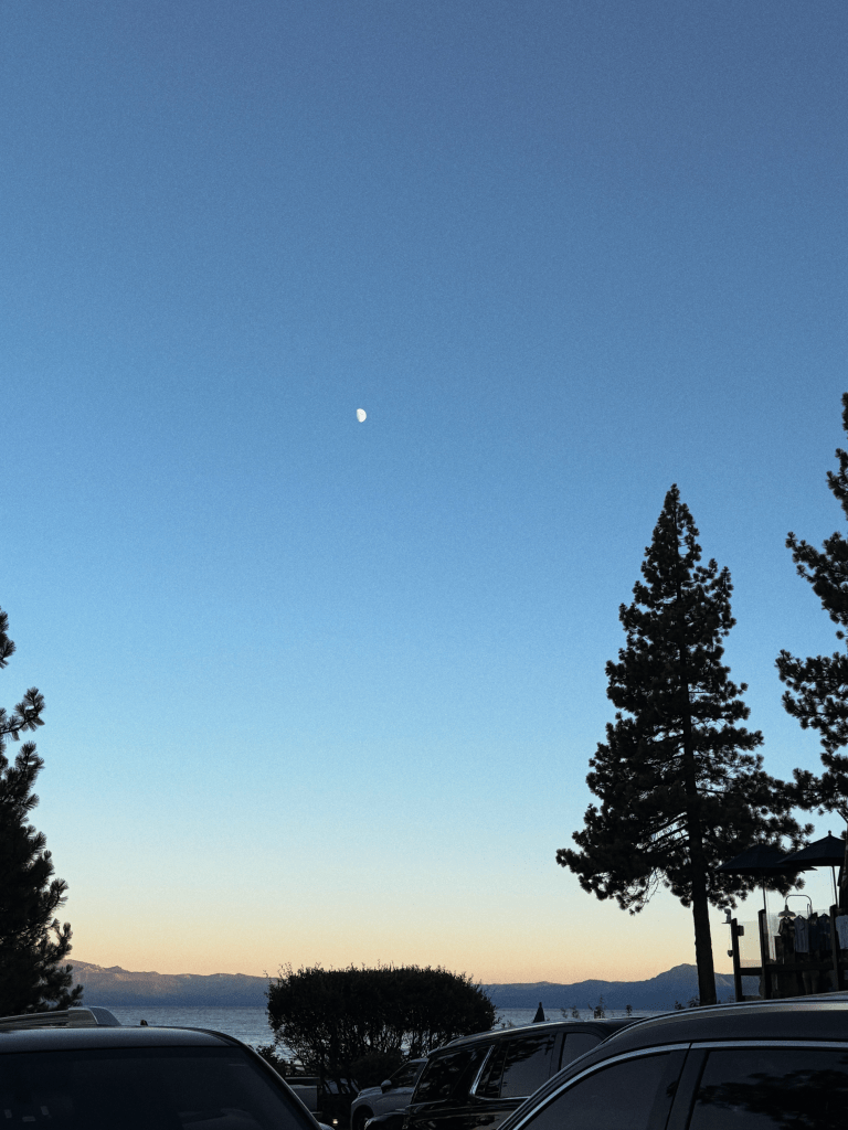 Breaking the 7-hour drive into three mini legs made it feel way more manageable. We arrived in Lake Tahoe around 9 PM, just as an Old Dominion concert was letting out nearby – so the whole area felt alive.